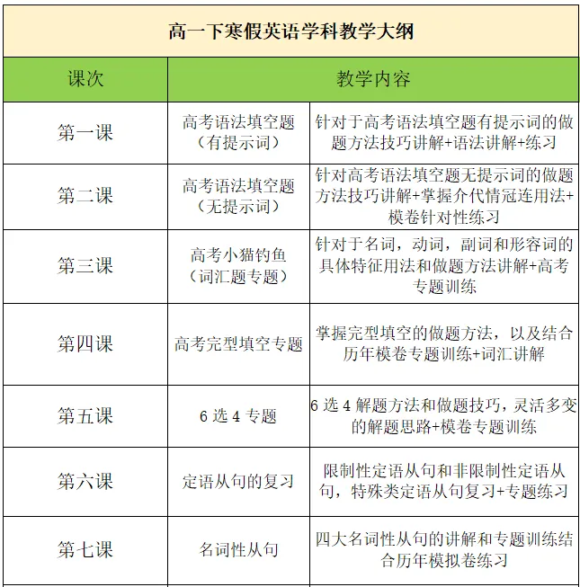 《高一下寒假英语特训课程》