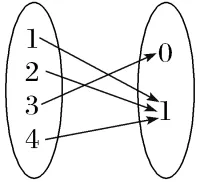 B.A={1,2,3,4},B={0,1},对应关系如图: