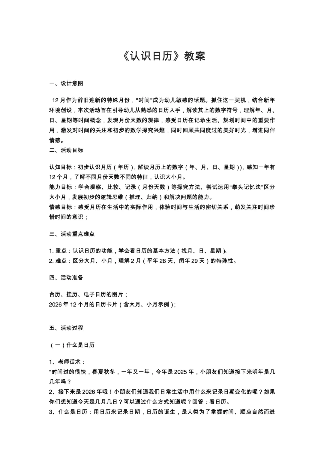 幼儿园2026认识日历25页PPT+教案