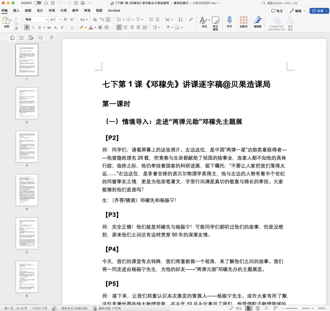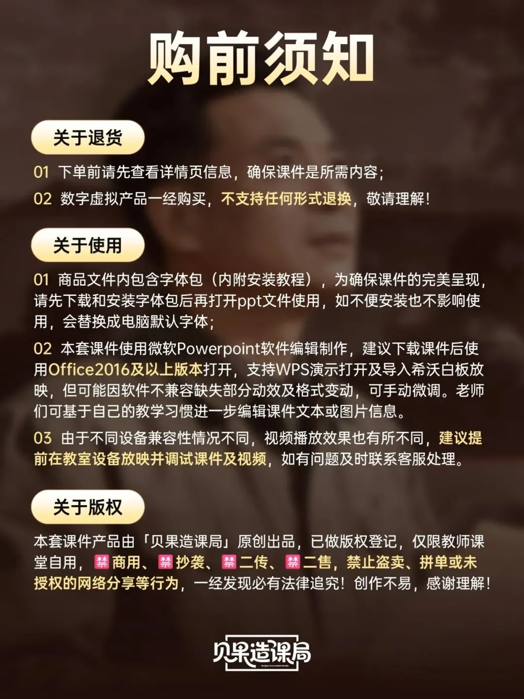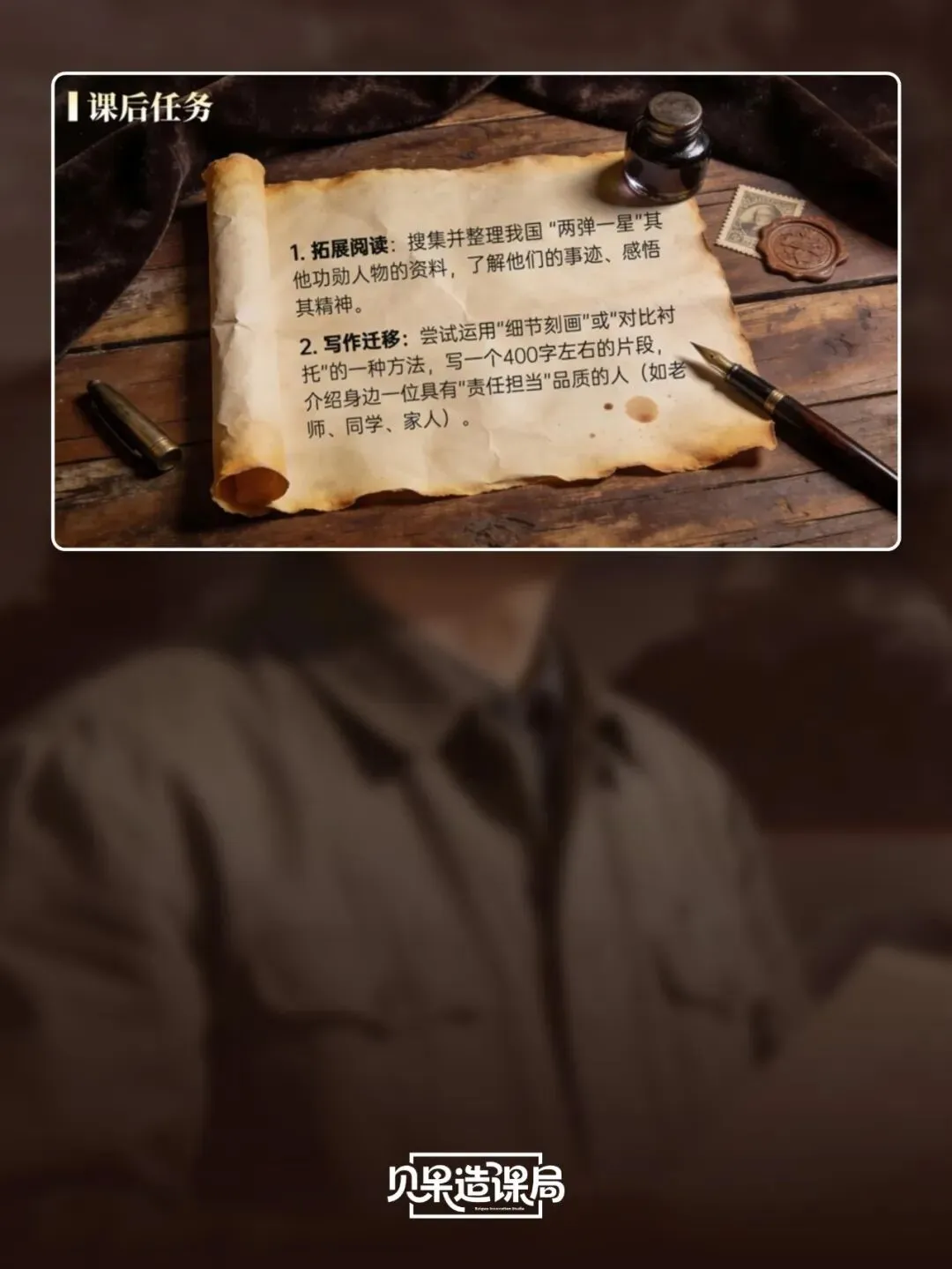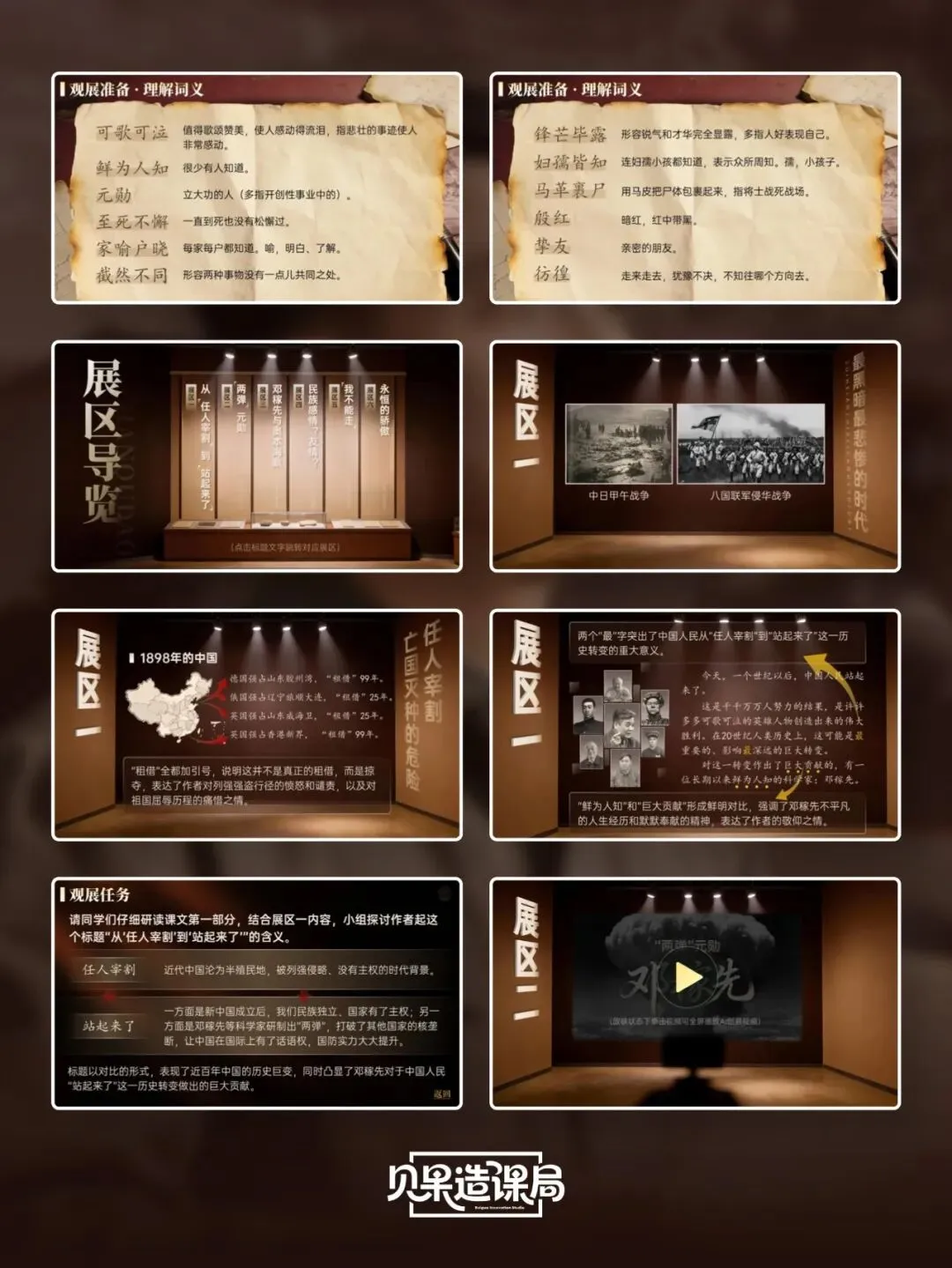 大家好~欢迎关注「贝果造课局」,今日分享部编版·七下语文第1课|杨振宁《邓稼先》精品课件。本课情境设计:观看由杨振宁“策展”的“‘两弹元勋’邓稼先主题展”,六大展区对应课文的6个部分,每个部分结合课文内容设计不同的展览材料,如历史图片、生平视频、模拟报纸、音频等,让学生可以沉静式观展,感受人物故事、体悟人物精神,同时理解作者的“策展匠心”。(购买方式在文章末尾)课件如有使用问题,均可联系客服,协助您第一时间解决:bgyw999
