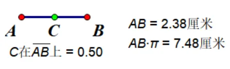 选中点C度量点值,度量线段AB长度,点击【数据】→【计算】,编辑得到公式如下: