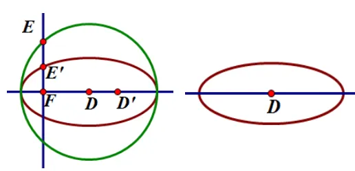 依次选中点E、E',点击【构造】→【轨迹】,得到椭圆。隐藏不必要的对象。如图2-9-2。