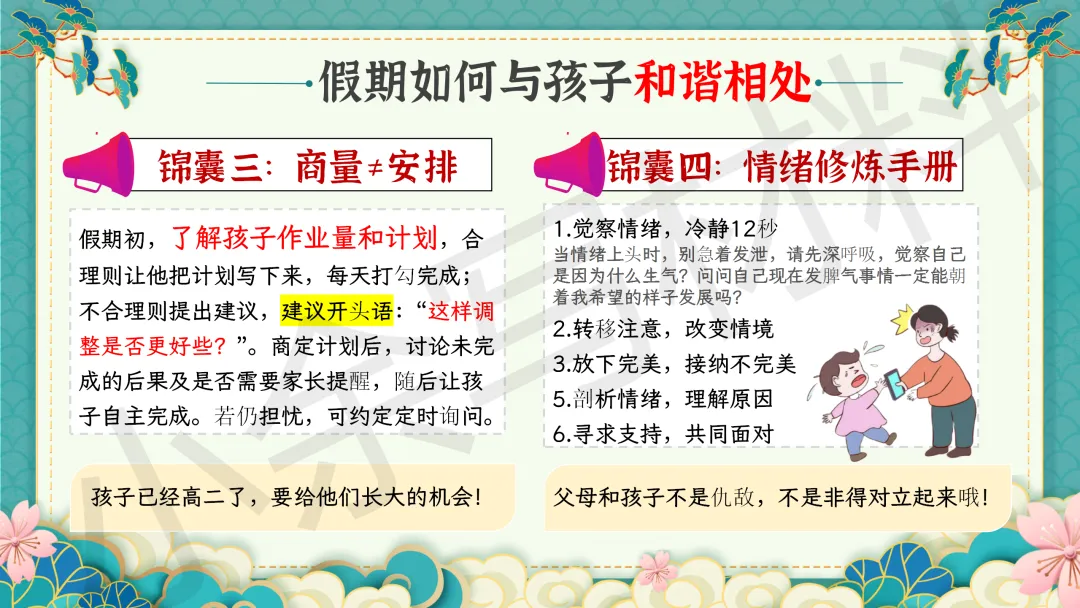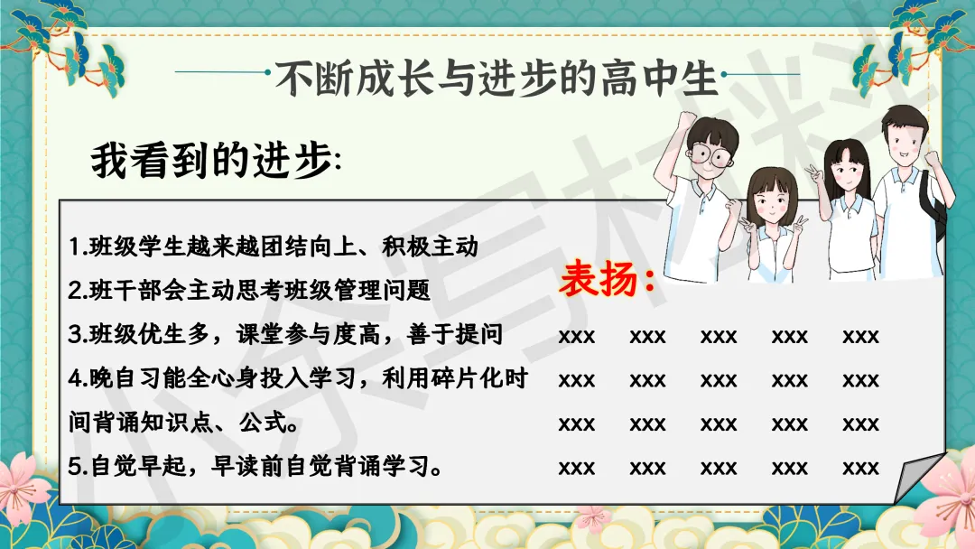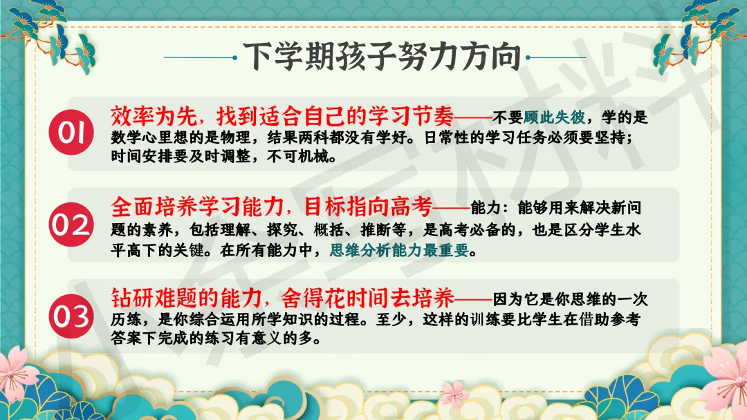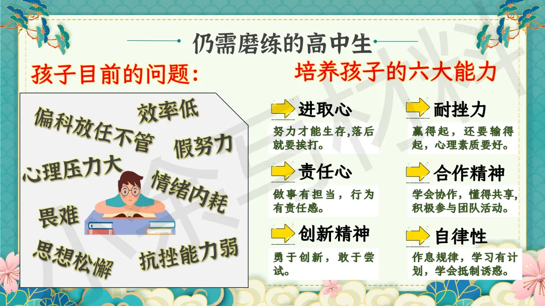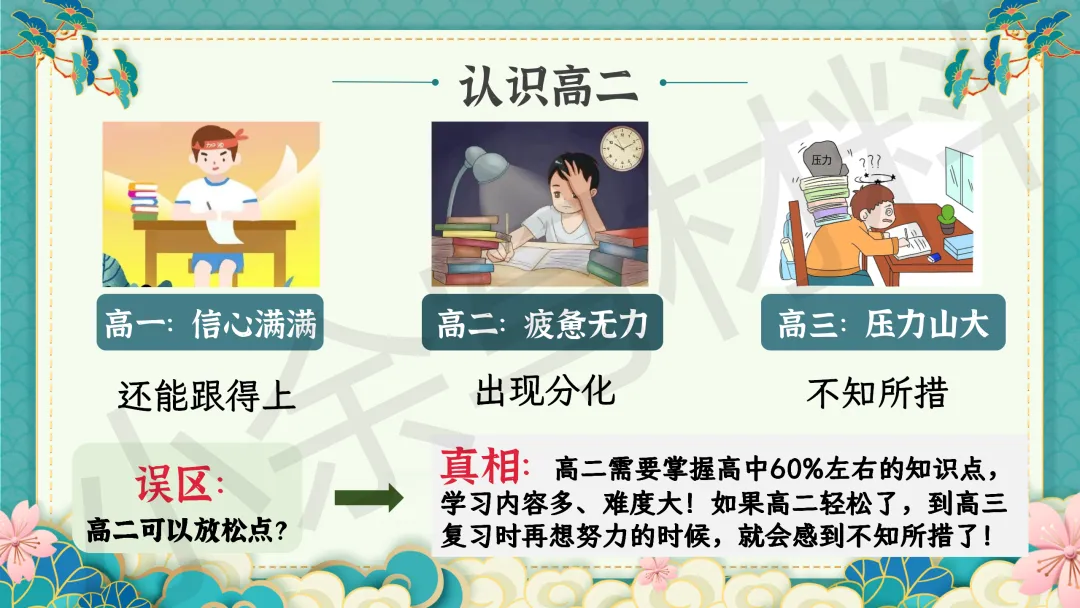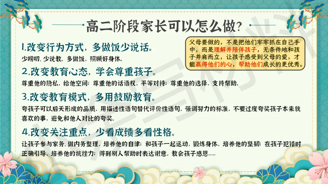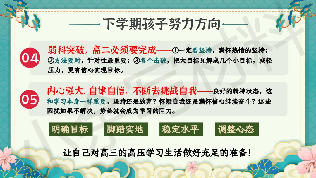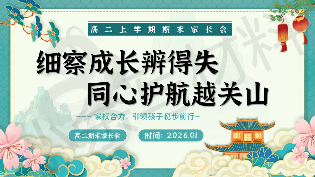 高中高二秋季上学期期末家长会 PPT 课件《细察成长辨得失,同心护航越关山》模板推荐(附配套发言稿)