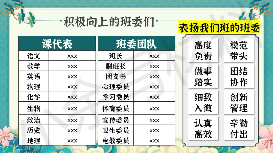 目录内容(一):《积极向上的高二X班》
