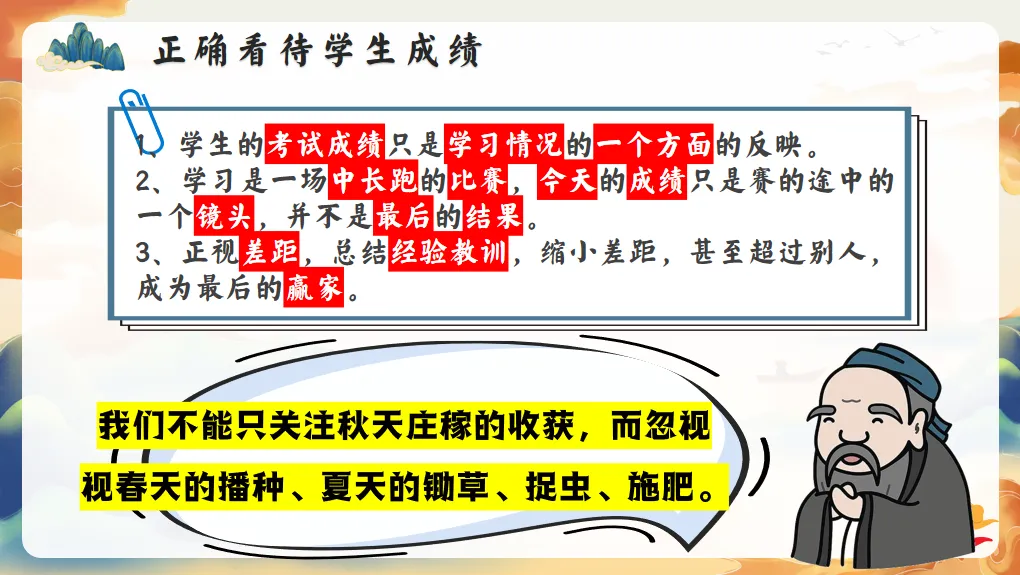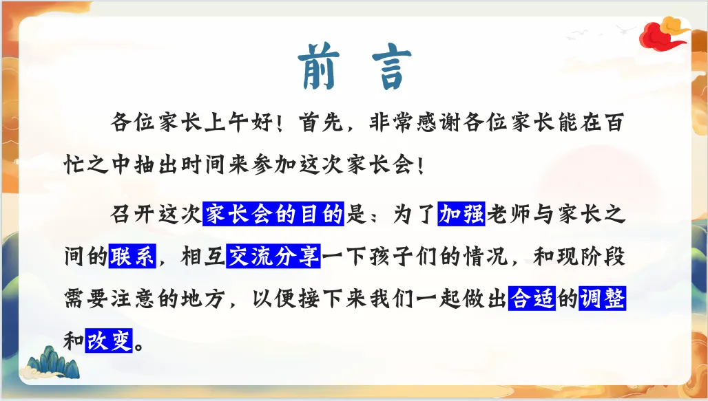 高中高二秋季上学期期末家长会 PPT 课件《细察成长辨得失,同心护航越关山》模板推荐(附配套发言稿)