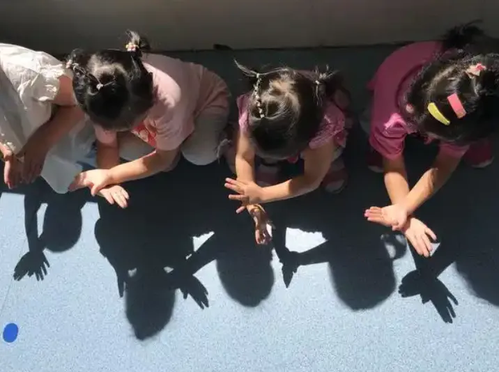 那等我们中午吃好饭,我们每个人到树下捡一片树叶,然后到四周去找找树叶的影子。
