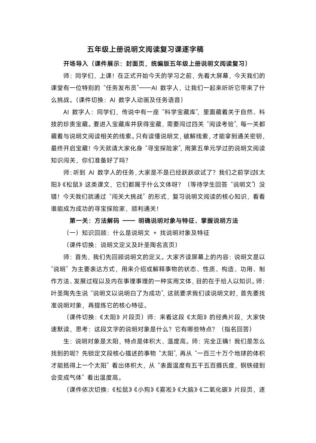 >.[复习课件]五年级上册语文期末复习专项说明文阅读复习
