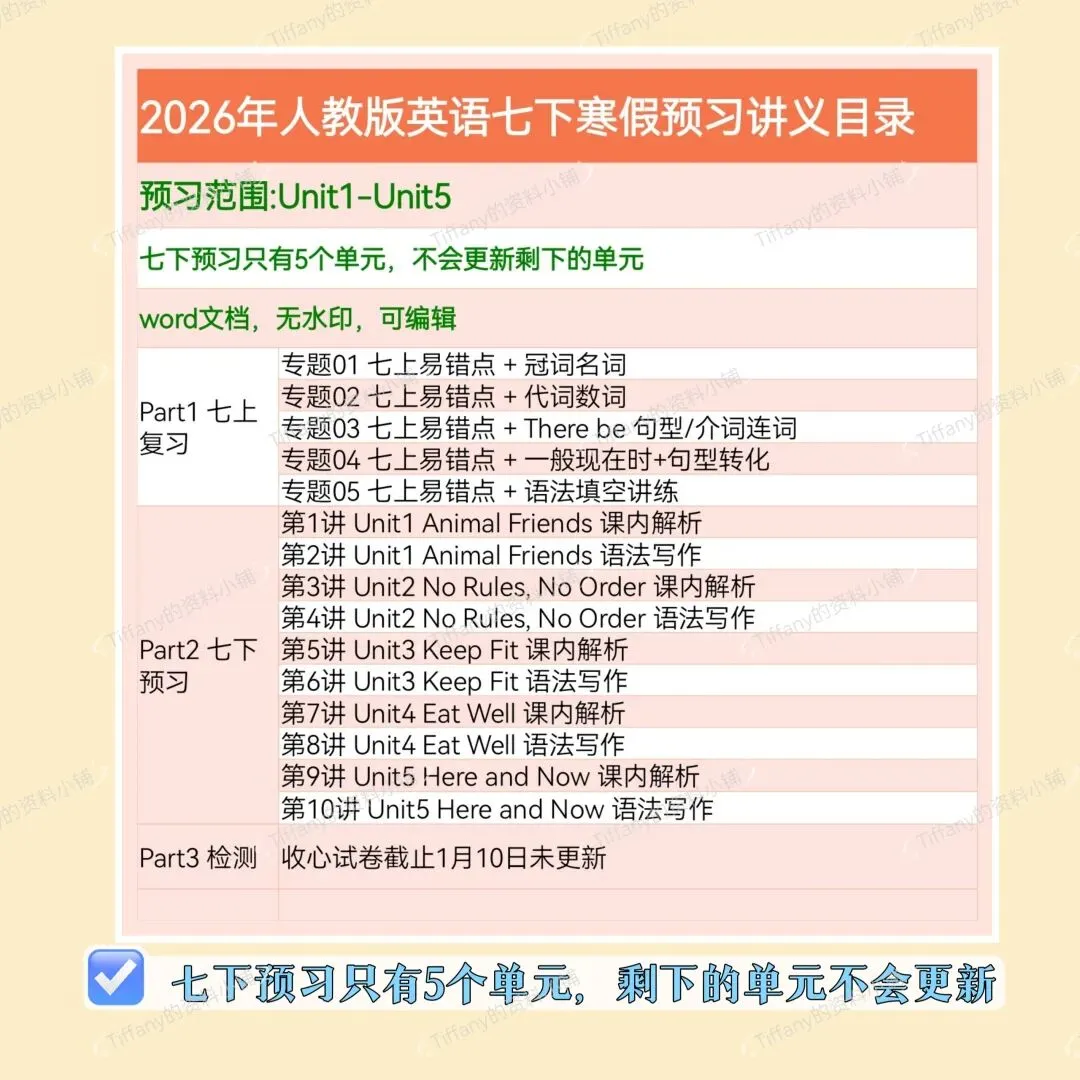 📚2026春季人教版七下教材单词表有些许调整,有变动,但不多