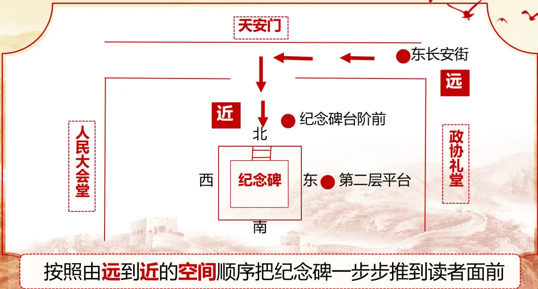 1. 瞻仰路线:由远及近 由整体到局部