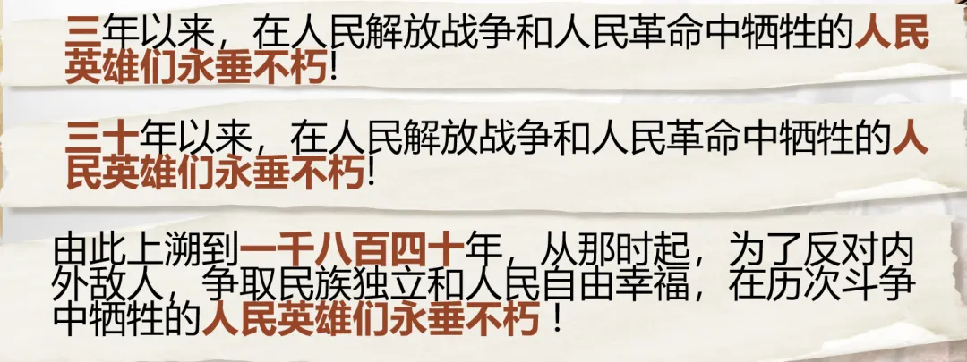 预设:人民英雄纪念碑碑文。全体学生齐读课文中碑文内容,升华情感(配背景音乐)。