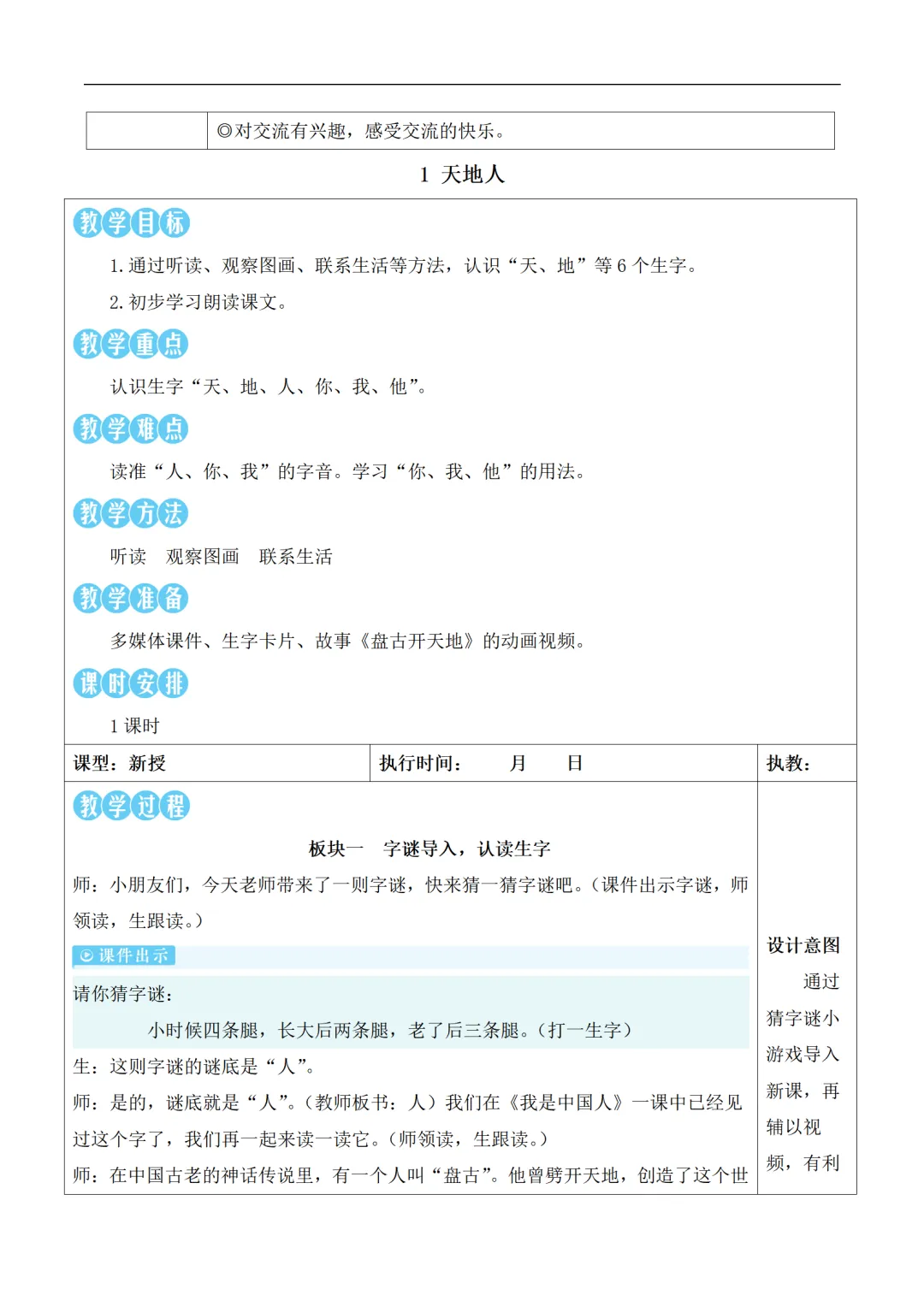 统编版语文一年级上册核心素养教案 全册(含反思)新教材(2025),可下载打印!