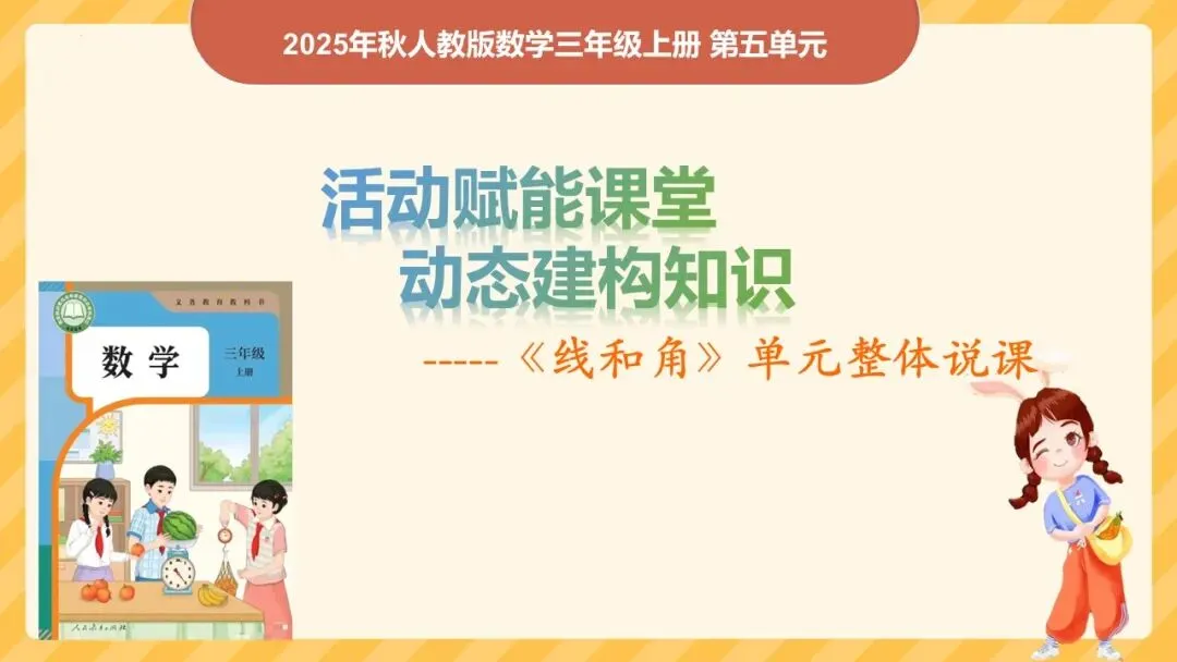 今天,我非常荣幸能和大家共同探讨人教版小学数学三年级上册第五单元《线和角》的单元整体教学思路。在“活动赋能课堂,动态建构知识”的核心理念指引下,我将从课标解读及核心素养、教材分析、学情分析、教学目标、教学重难点、单元课时安排、教学策略以及课时说课这八个方面,进行全面、细致的汇报,希望能为大家呈现一份完整且具操作性的教学方案。