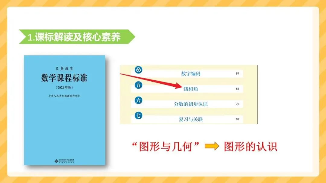 首先,我们来聚焦课标要求与核心素养的落实。《线与角》单元隶属于“图形与几何”领域中图形的认识范畴,这一领域是培养学生空间观念的重要载体。2022年版《义务教育数学课程标准》在“内容要求”中明确提出:要结合实例认识线段、射线和直线;体会两点间所有连线中线段最短,知道两点间距离;结合生活情境认识角,知道角的大小关系;会用量角器量角,会用量角器或三角板画角。同时,在图形认识与测量的过程中,要着力增强学生的空间观念和量感。