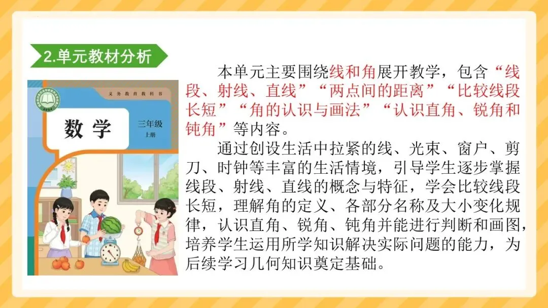 新人教版数学三年级上册《线和角》单元整体说课稿