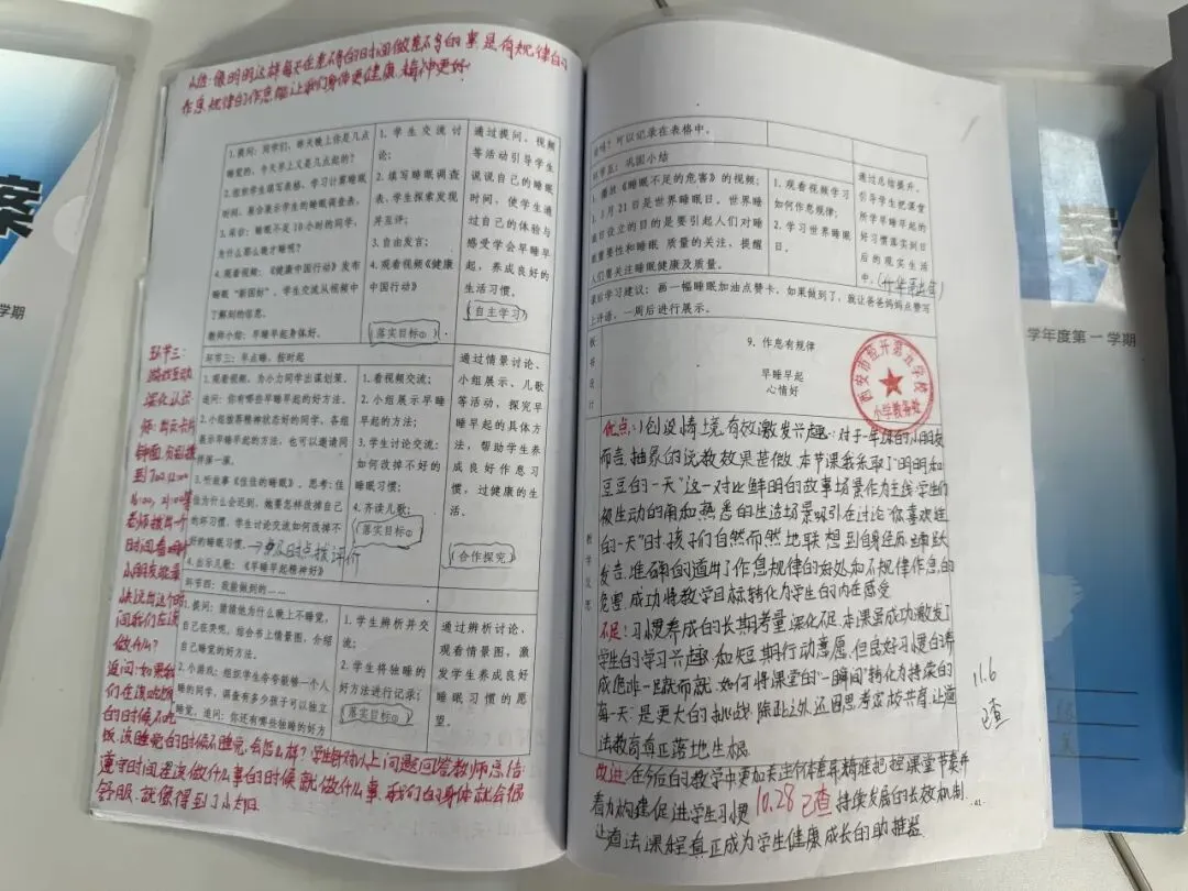 展评现场,一本本教案整齐陈列,字迹工整、环节清晰。教师们围绕“1252”教学模式,在目标设定、活动安排等方面精雕细琢,既有规范统一的环节,又有个性化的教学思考与调整。一笔一划,书写的是课堂的蓝图;一字一句,蕴含的是教学的温度与智慧。