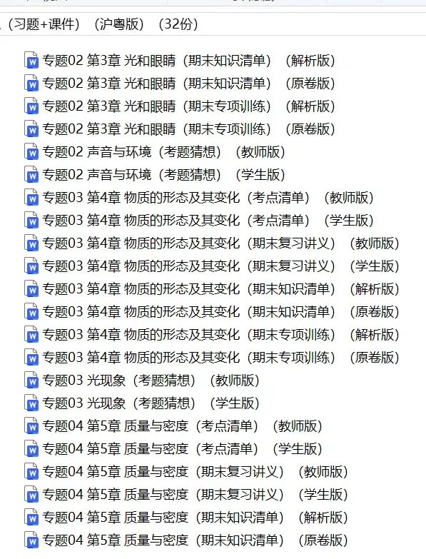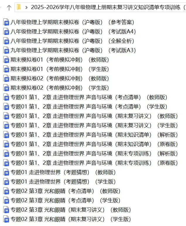 >2025年八上物理沪粤版:期末复习讲义综合检测专项训练知识清单(习题+课件)32份含答案解析 | 完整电子版文档可下载打印