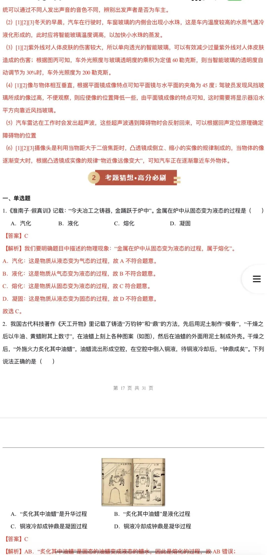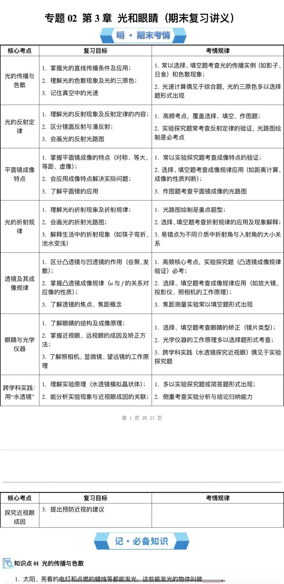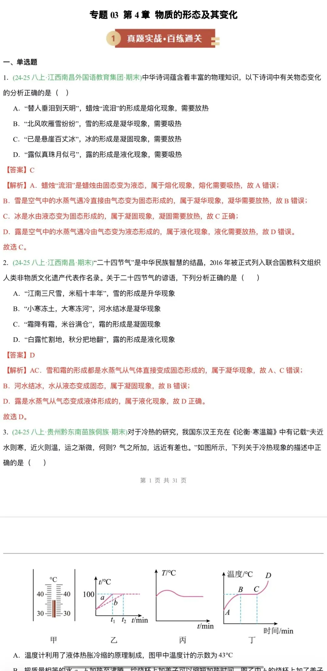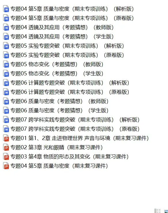 2025年八上物理沪粤版:期末复习讲义综合检测专项训练知识清单(习题+课件)32份含答案解析 | 完整电子版文档可下载打印