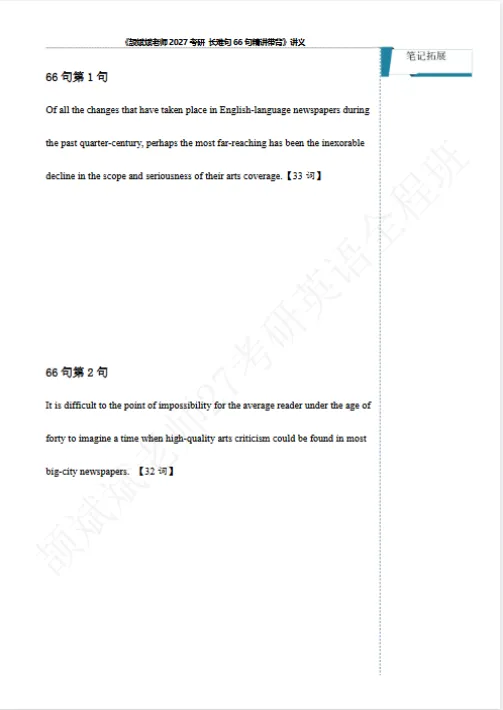 27考研颉斌斌老师66句讲义,下方链接直接自取