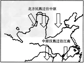 *东汉、魏、晋时期两大民族迁徙路线:北方游牧民族迁往中原(五胡内迁)、中原汉族迁往江南(北民南迁)