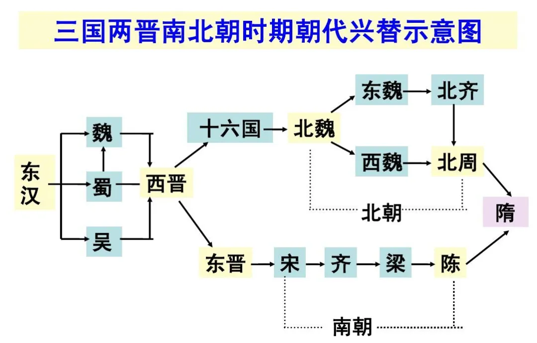 *注意:三国灭亡的顺序是蜀、魏、吴;灭蜀的是魏,灭魏和吴的是西晋。