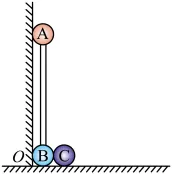 小球 A 开始下滑到最后落到水平地面上的整个过程中,只有靠在墙壁时墙壁对 A 球有冲量,大小等于杆对 A 球推力的水平冲量,而同一根杆的力总是相等,则杆对 A 球推力的水平冲量等于杆对 BC 球的水平冲量,故