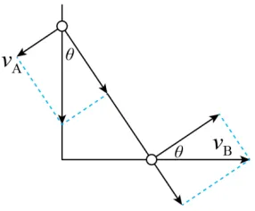 当小球 A 和墙面恰好分离时,两球的速度关联如图所示,沿杆方向的速度相等,有