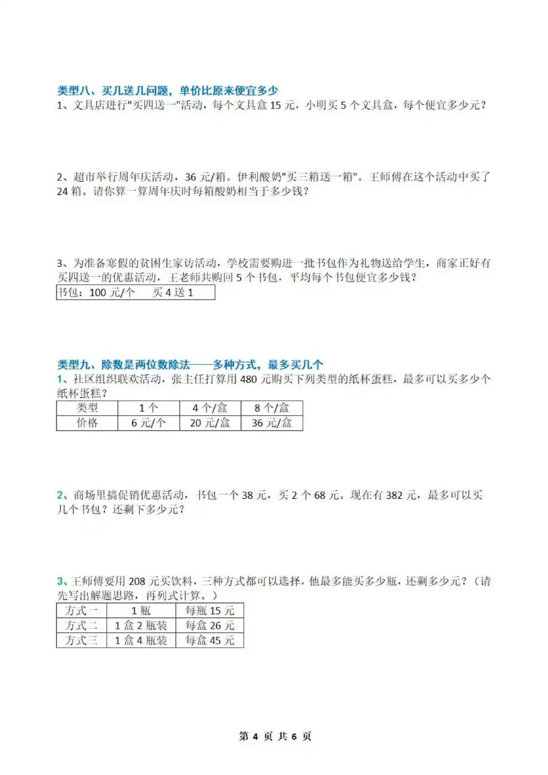 类型八、买几送几问题,单价比原来便宜多少