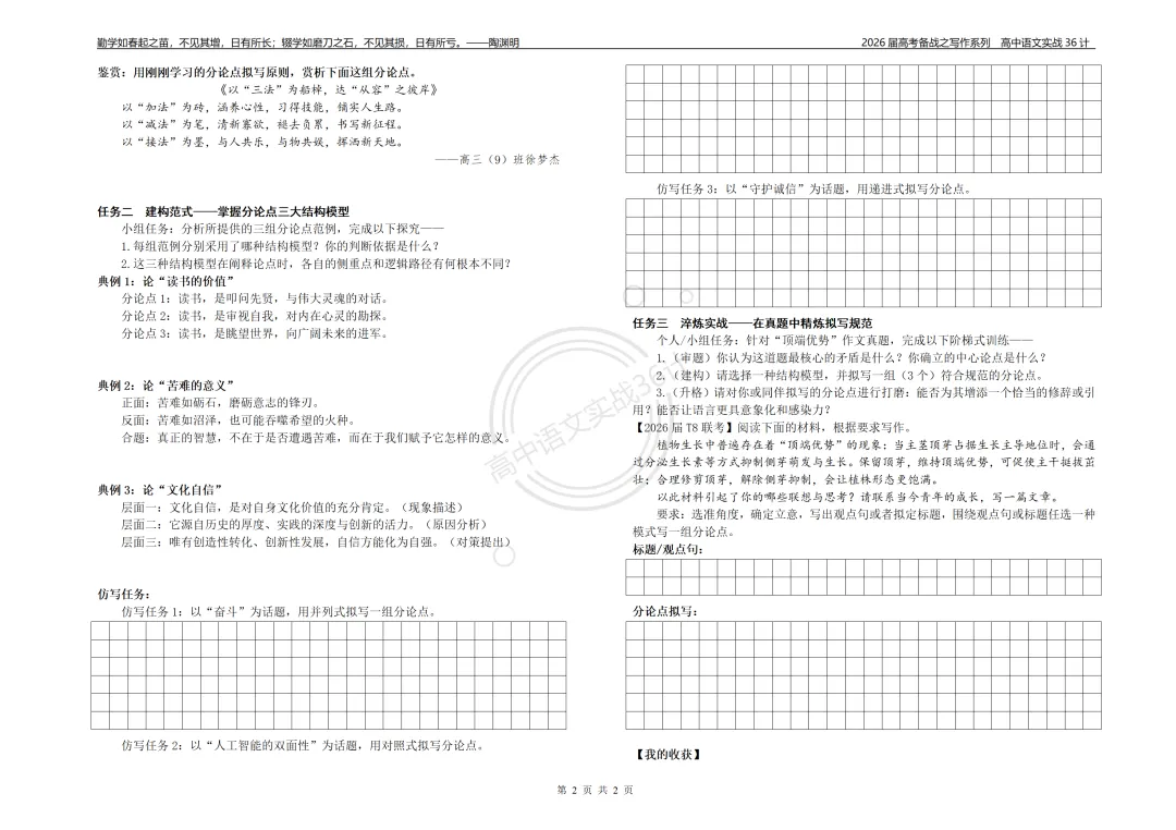 3.能够在真题情境中拟写出格式规范、逻辑严谨、表达出彩的分论点。