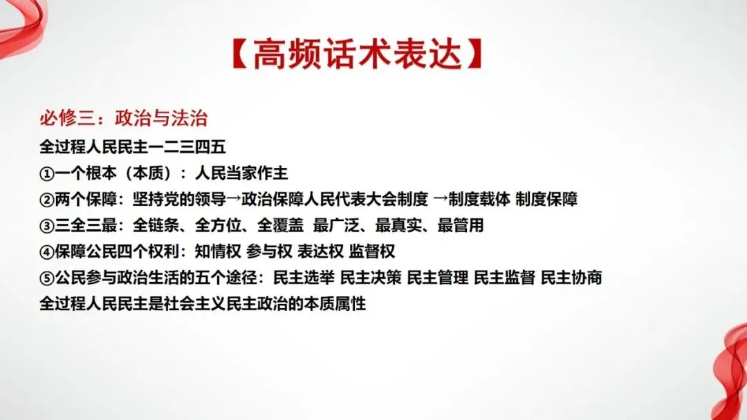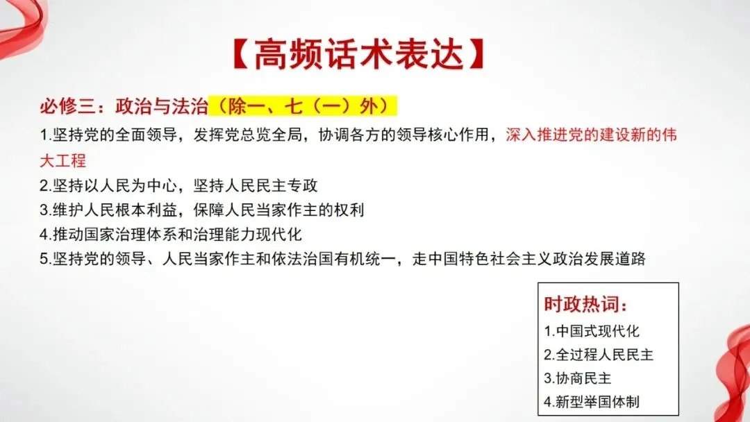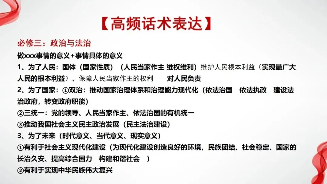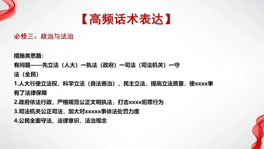 2026高考政治|必修3《政治与法治》主观题常用答题术语与事例