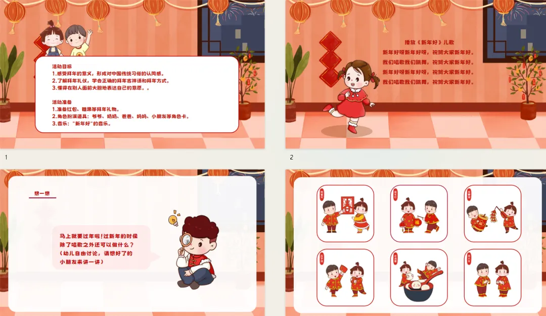 1. 感受拜年的意义,形成对中国传统习俗的认同感。