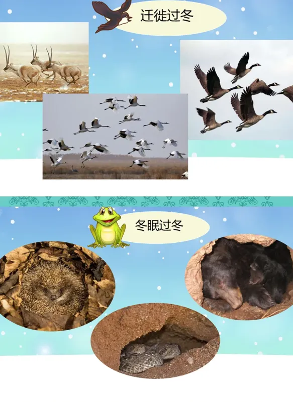 1.初步了解一些动物过冬的方式,了解它们的生活习性与季节变化的关系。