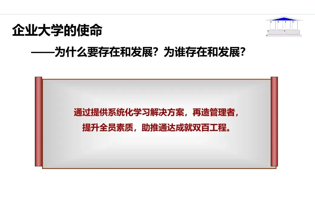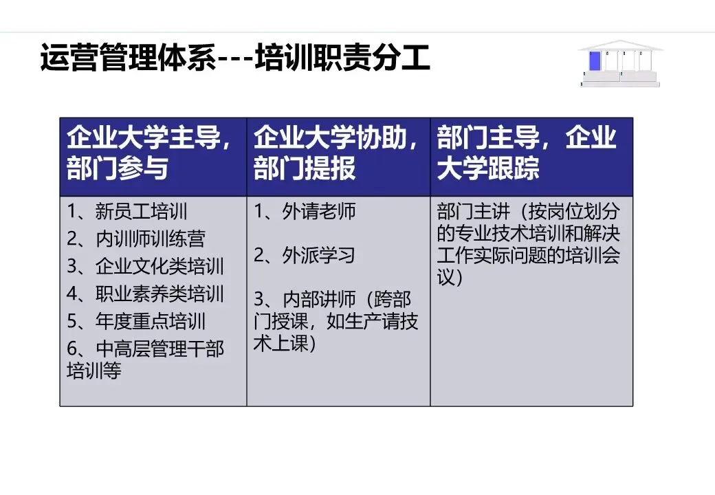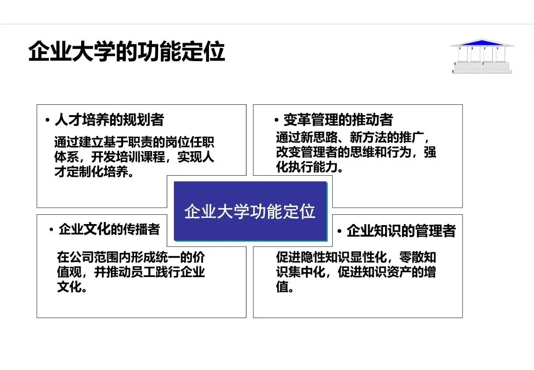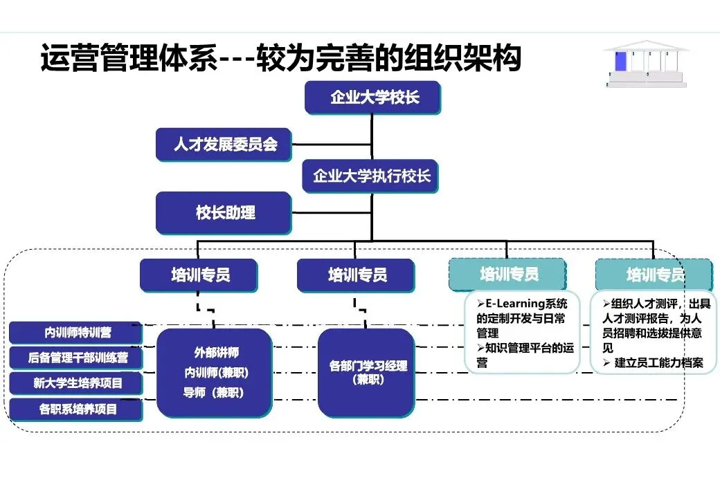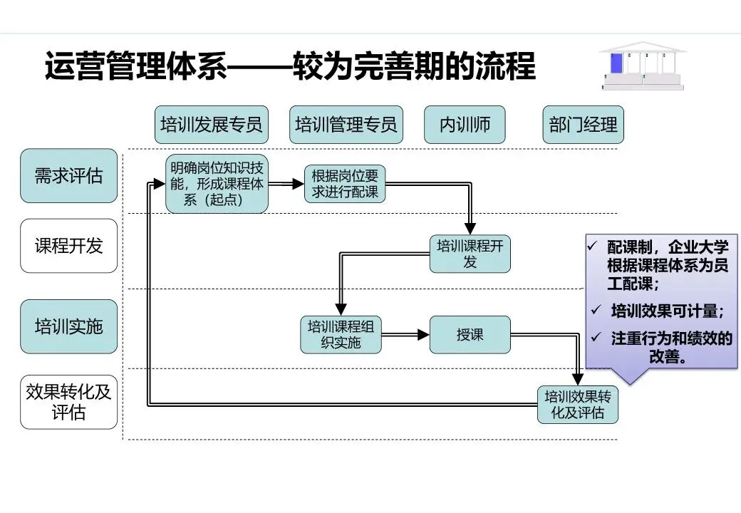 价值输出:企业大学成为内部人才培养的核心载体,核心岗位人才供给率达到90%以上;输出人才培养成果,支撑业务绩效提升;探索对外合作培训(如产业链上下游企业培训),打造外部品牌影响力。