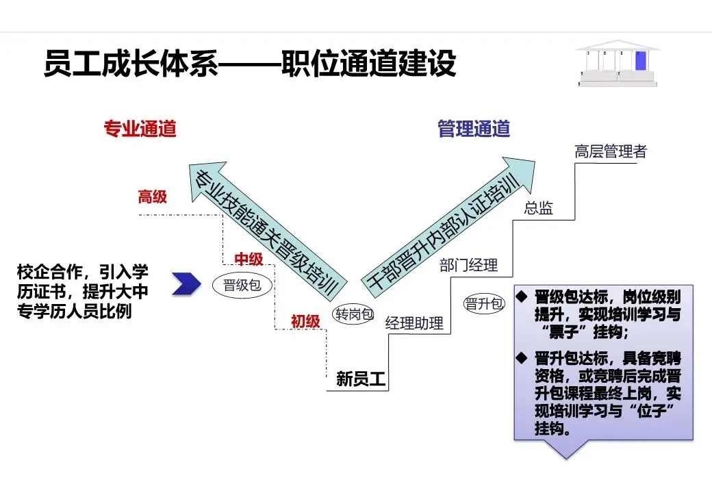 专业人才“精进计划”:针对各业务领域专业骨干,开展技能进阶培训、行业交流、项目历练,提升专业深度与问题解决能力,打造领域内专家型人才。