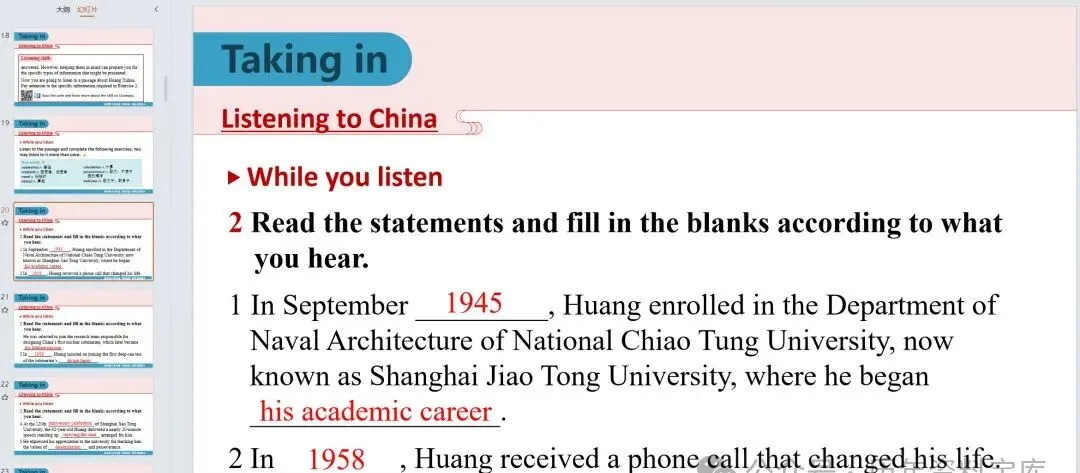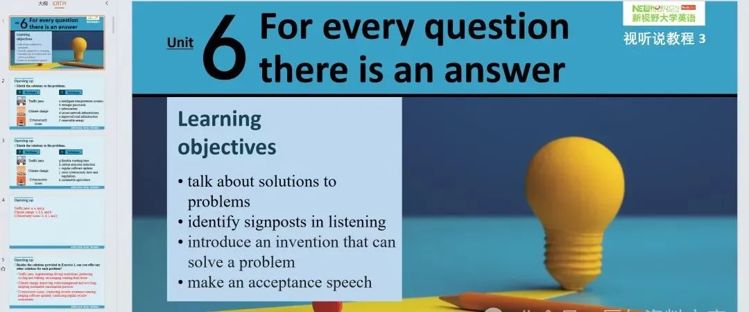新视野大学英语视听说教程 第3册 课后习题答案+课件PPT+听力原文+听力音频视频(第四版/思政智慧版)。课本答案和听力原文都在ppt里面!!!通过夸克网盘分享的文件:「视听说教程3答案+PPT+音频」链接:https://pan.quark.cn/s/4130e0e48d43