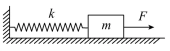 题目:如图,一轻弹簧左端固定,右端连接一物块。弹簧的劲度系数为,物块质量为,物块与桌面之间的滑动摩擦因数为。重力加速度大小为。现以恒力()将物块自平衡位置开始向右拉动,则系统的最大势能为( )