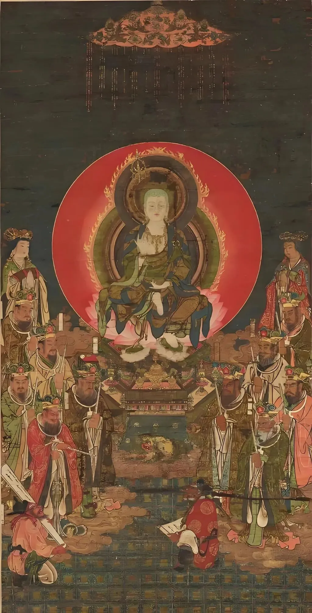 这段经文之中所说的“金轮银轮,诸轮王等”,并不是说只有金轮和银轮这两种圣王,它是一个统称,也就是说,金、银、铜、铁等四种转轮圣王都已经来到这个地方,一起听佛陀宣讲这部《佛说延命地藏菩萨经》。