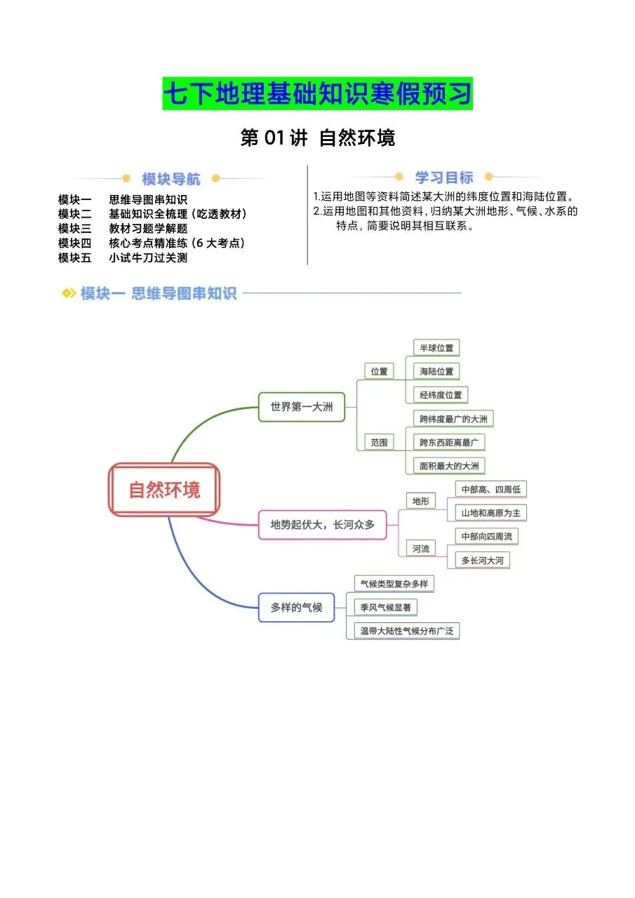 今天整理了2026 新教材七下地理基础知识讲义汇总(寒假预习)电子版可打印!
