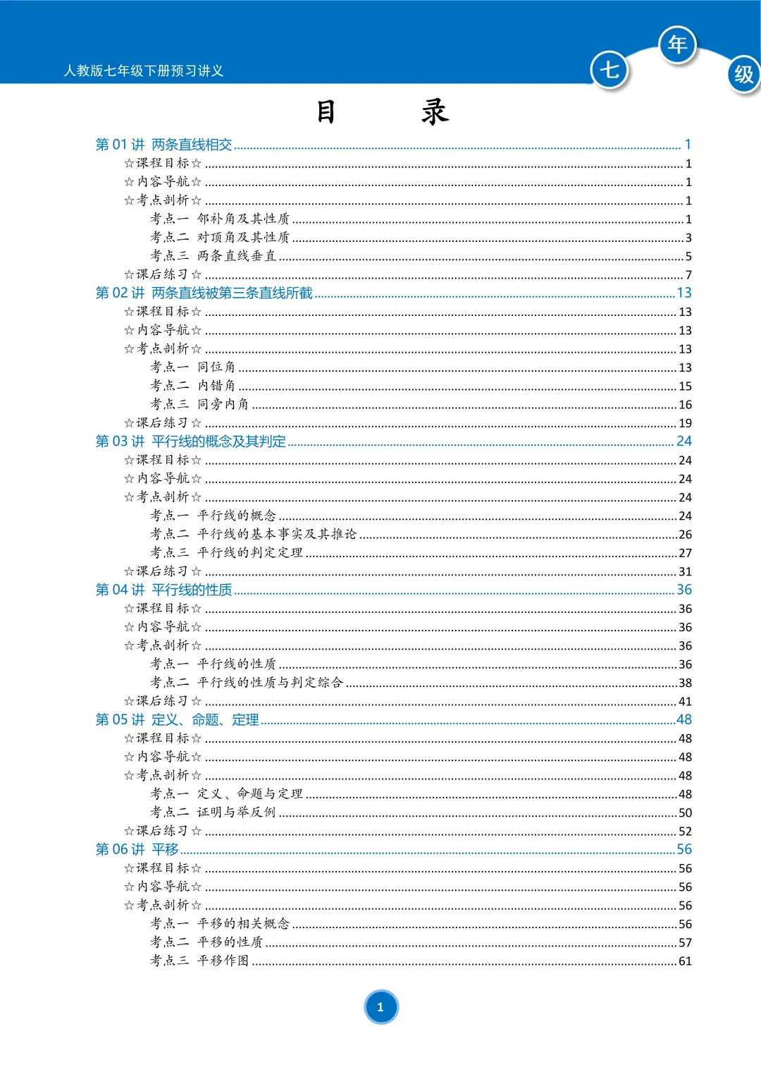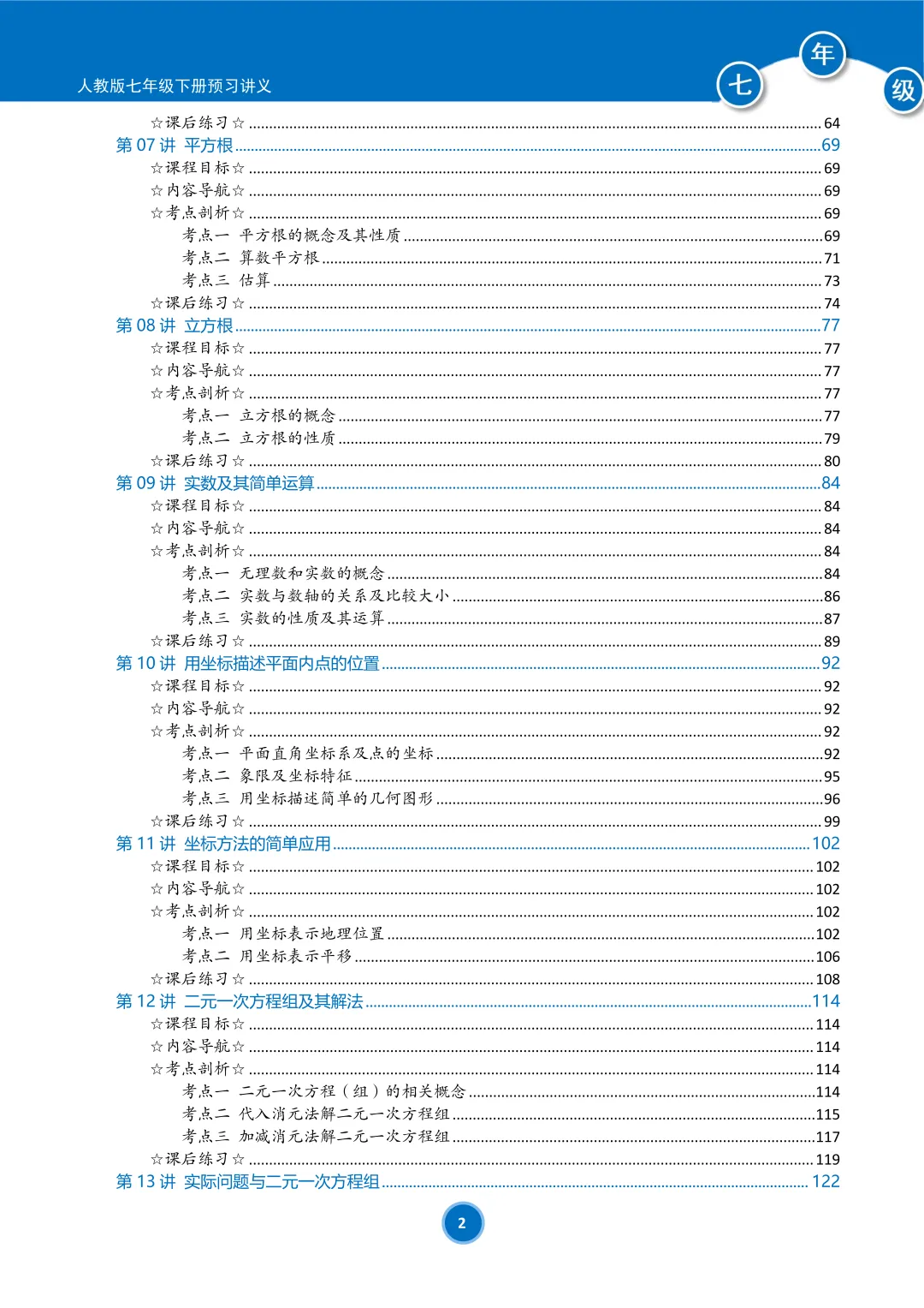 📖总共18讲,预习7下新教材内容