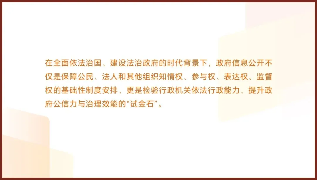 大家好。非常荣幸能有机会与各位共同探讨政府信息公开这一兼具理论深度与实践复杂性的重要课题。在全面依法治国、建设法治政府的时代背景下,政府信息公开不仅是保障公民、法人和其他组织知情权、参与权、表达权、监督权的基础性制度安排,更是检验行政机关依法行政能力、提升政府公信力与治理效能的“试金石”。近年来,随着全社会法治意识的普遍增强,政府信息公开申请数量持续攀升,由此引发的行政争议也呈多发态势。如何准确理解并娴熟运用相关法律法规,规范、高效、稳妥地处理信息公开申请,有效预防和化解行政争议,成为摆在每一位行政机关工作人员面前的重要课题。