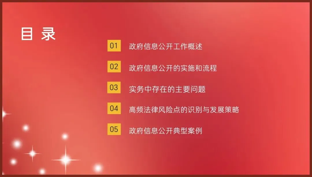 今天,我将结合自身在审判与律师实务中积累的经验,围绕《中华人民共和国政府信息公开条例》(以下简称《条例》)的核心要义,以“实务操作与风险防控”为主线,系统梳理政府信息公开工作的关键环节、常见问题与裁判规则,旨在帮助大家构建清晰的工作逻辑,提升实务操作的专业性与规范性。