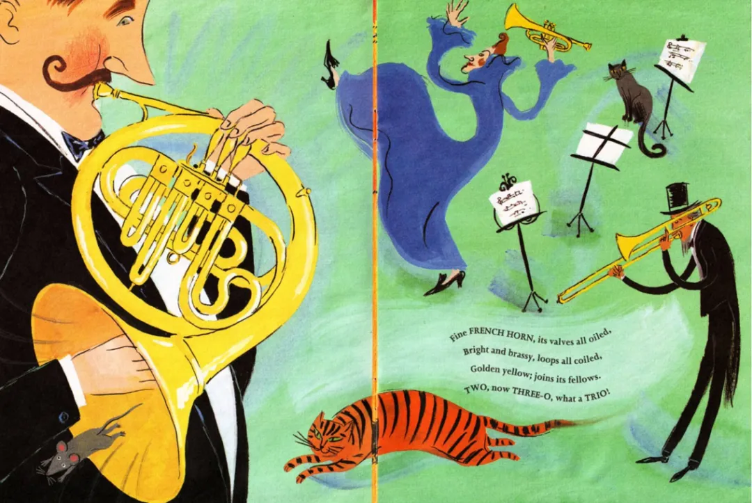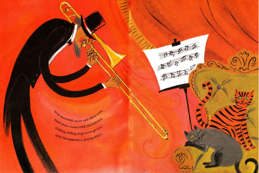 带领学生逐页朗读绘本,结合绘本的韵律节奏、计数逻辑和乐器特点,强化学生对绘本核心内容的理解。