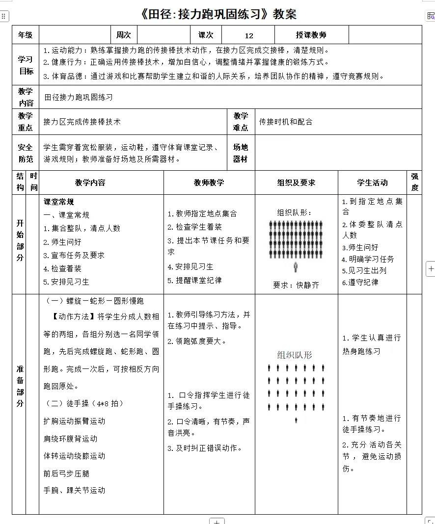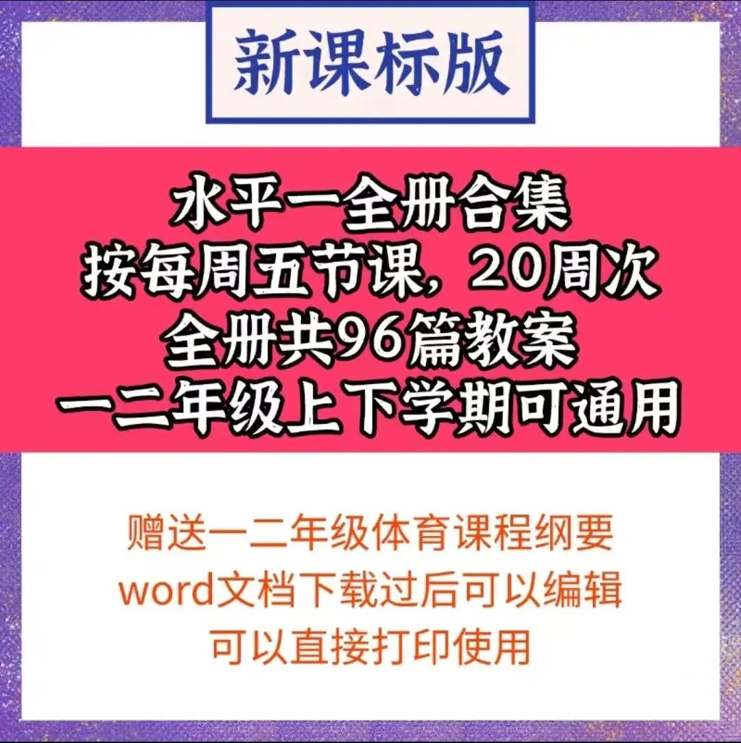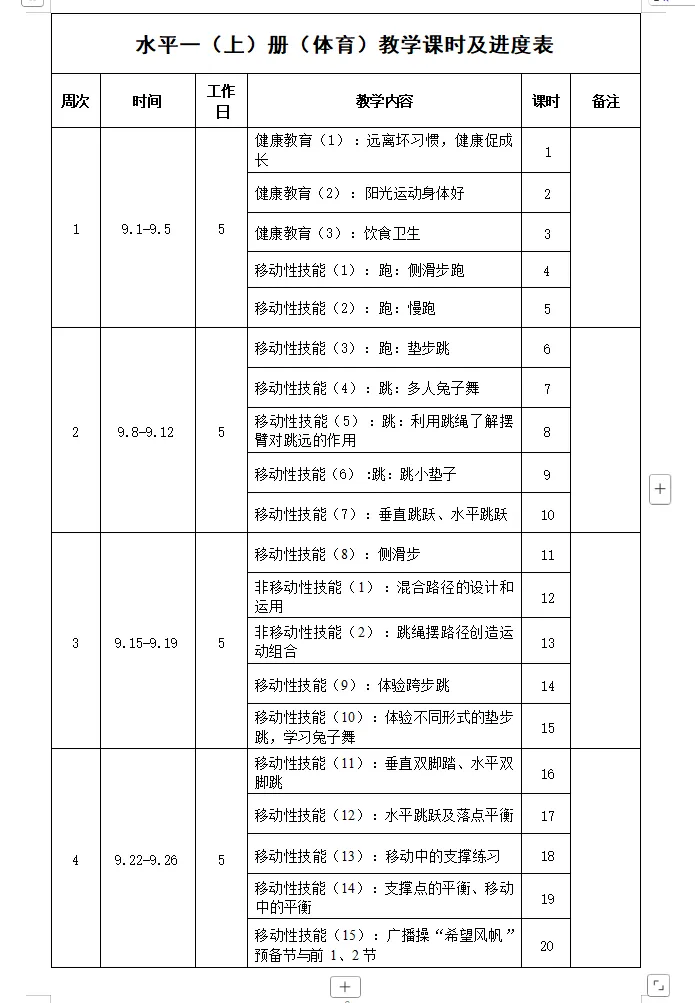 1年级新课标体育教案下载(每周5课时、一学期96课时)