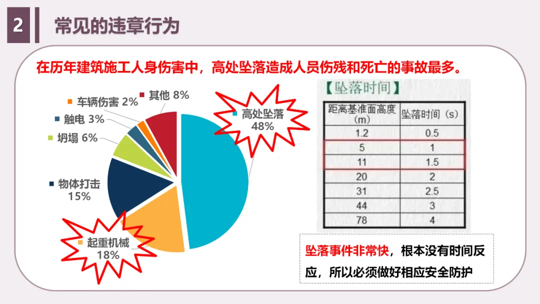 1.未系安全带或系挂不规范:作业人员在2米及以上高处作业时未系安全带,或安全带未挂在牢固可靠处,如将安全带挂在不牢固的物件上。