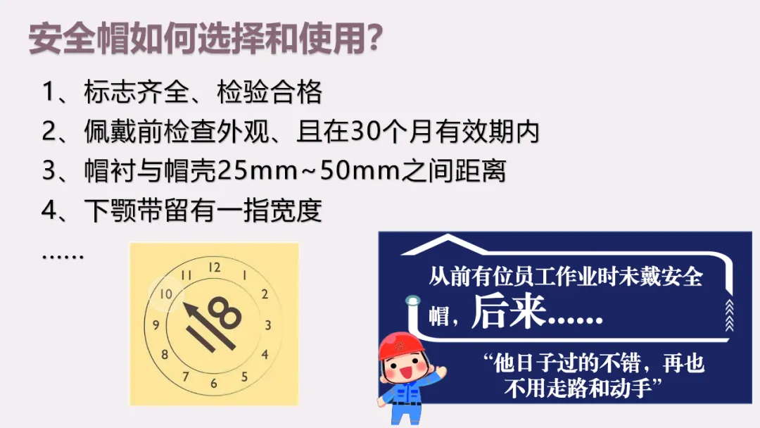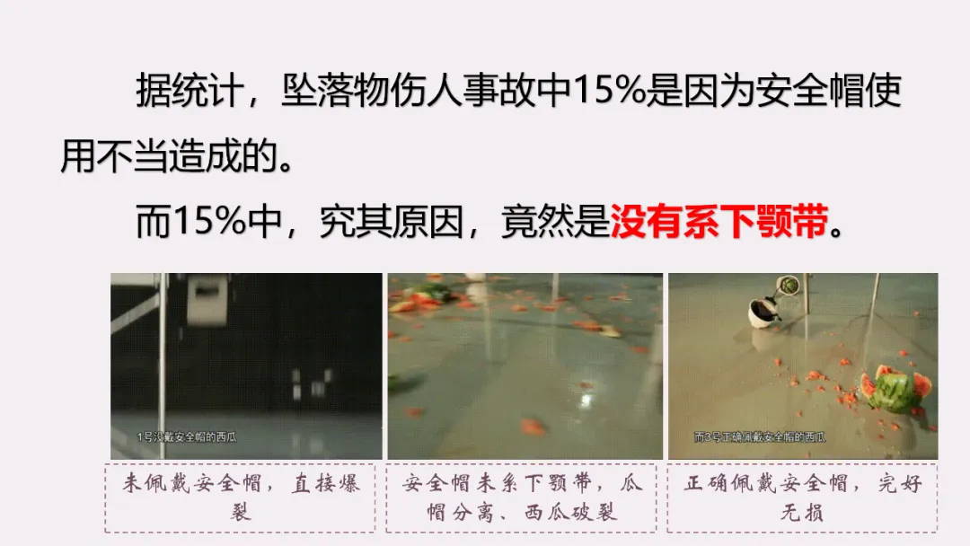 1.作业现场不戴安全帽或未正确佩戴:作业现场不戴安全帽,或未正确佩戴安全帽(如未系下颚带,后箍不拧紧)。