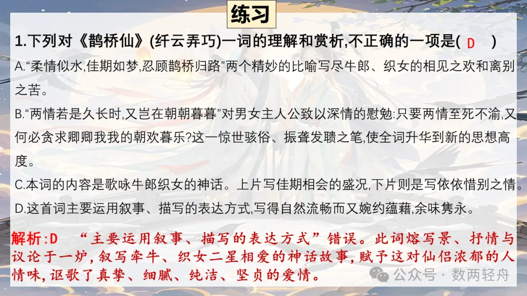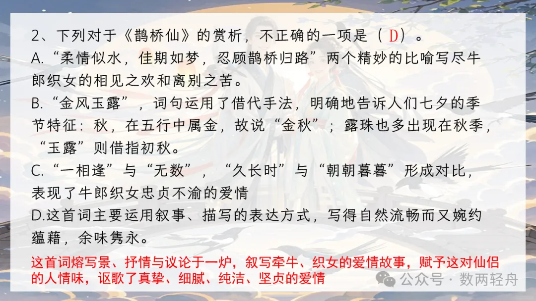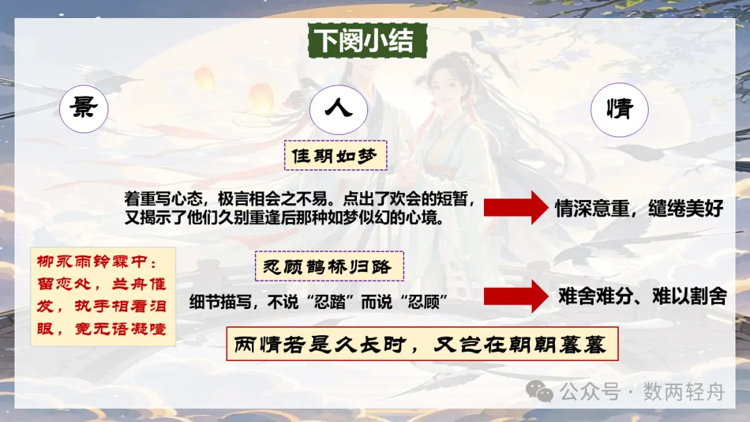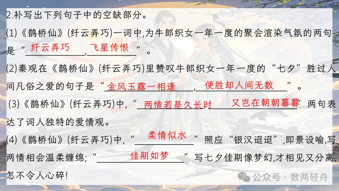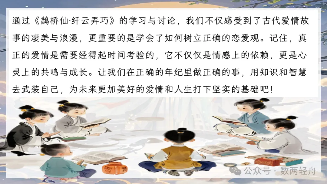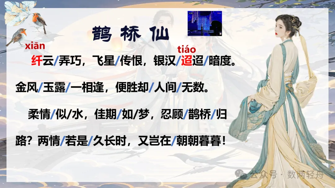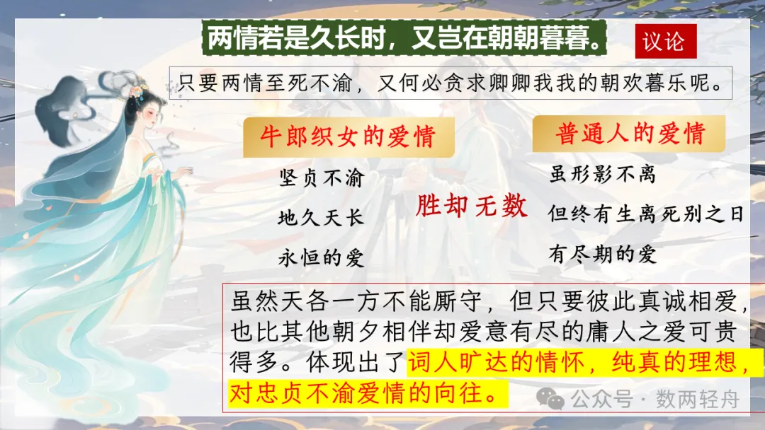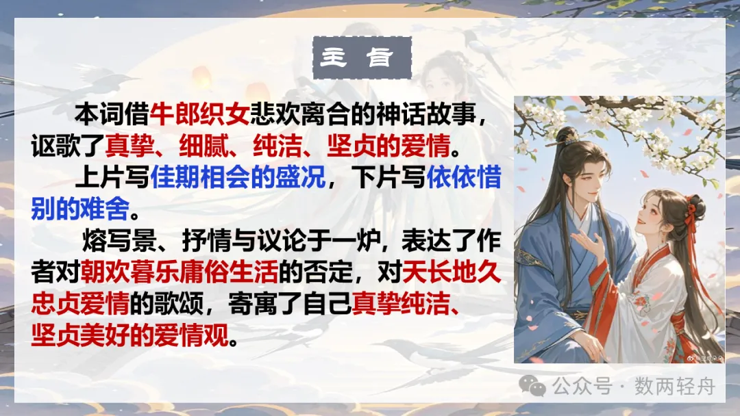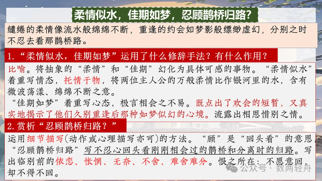 柔情似水,佳期如梦,忍顾鹊桥归路。两情若是久长时,又岂在朝朝暮暮。