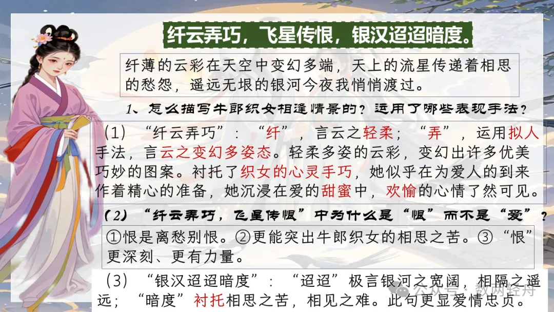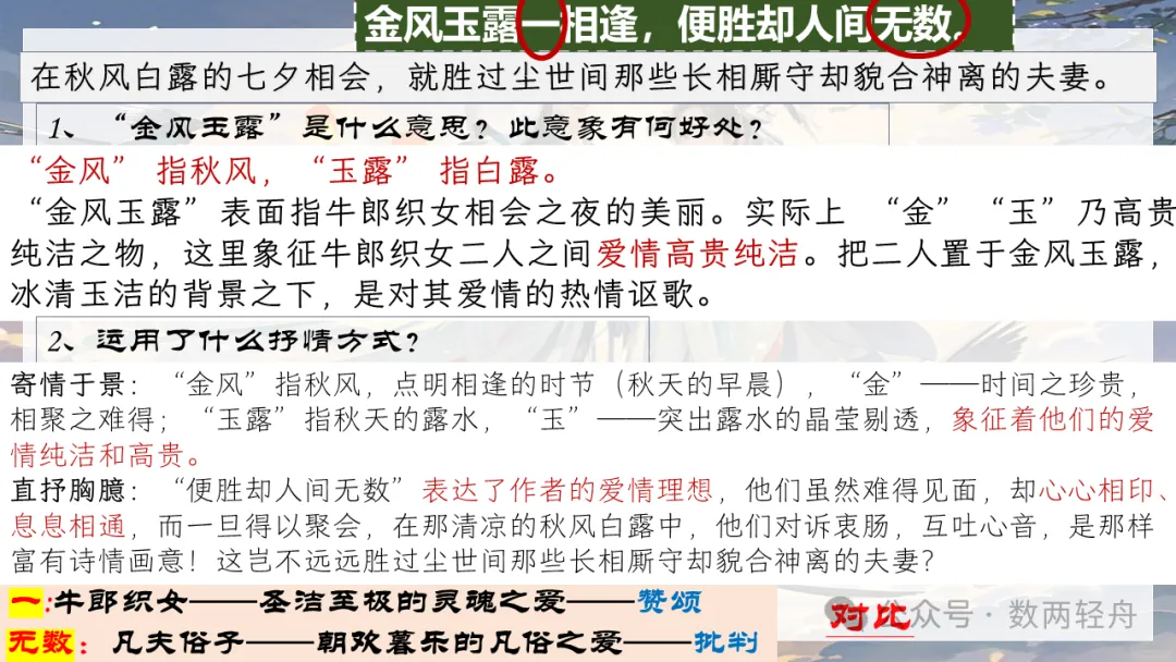纤云弄巧,飞星传恨,银汉迢迢暗度。金风玉露一相逢,便胜却人间无数。