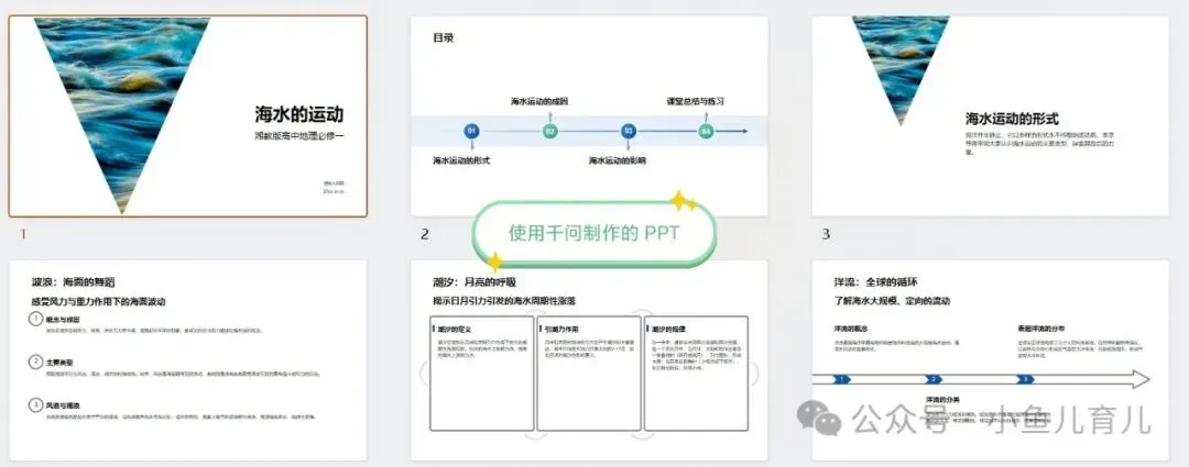 比如,让它生成一节关于“海水运动”的课件,虽然框架完整,却存在几个明显问题: