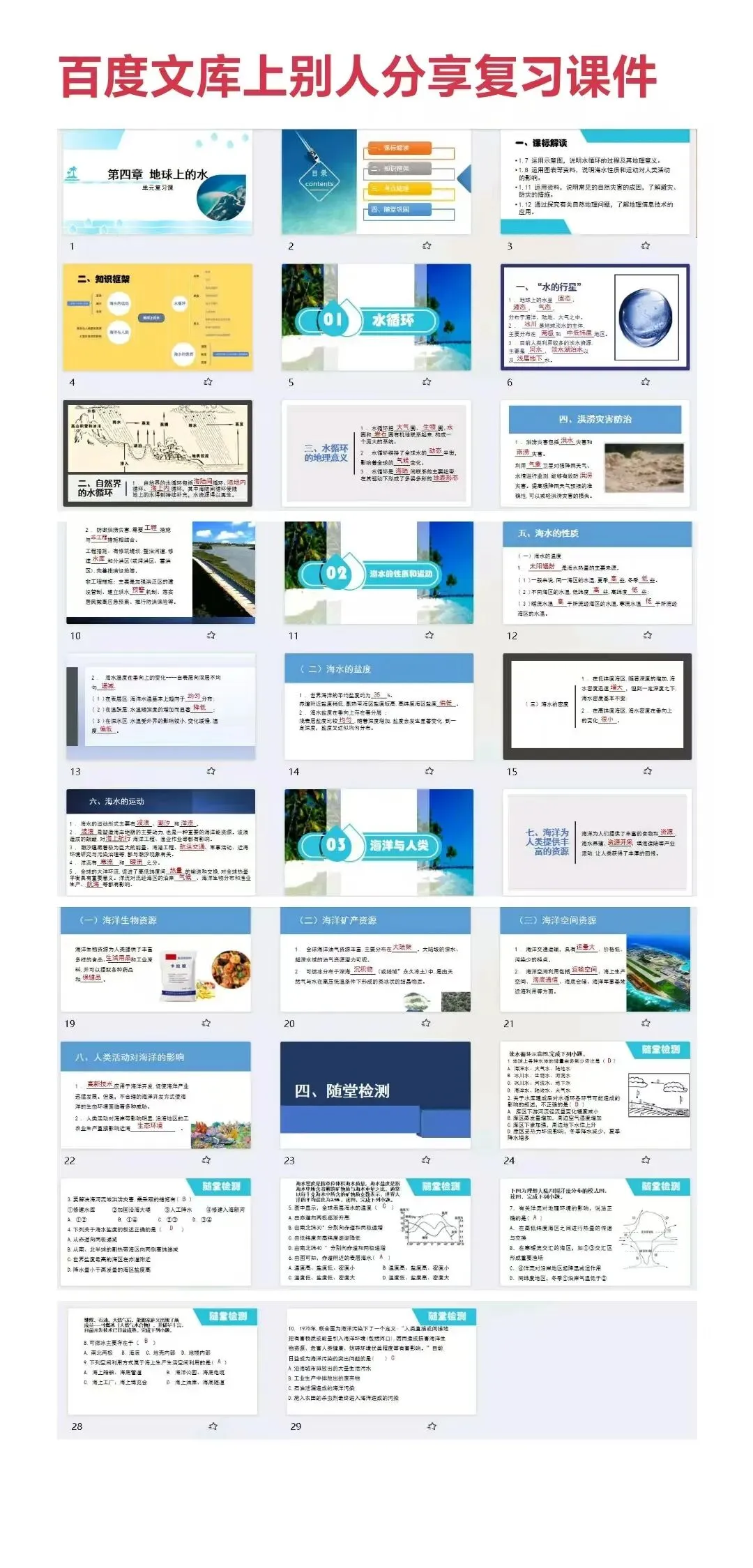 我先在百度文库“付费精选”中找到一份他人分享的《地球上的水》知识点总结,再让AI结合这份总结生成PPT。
