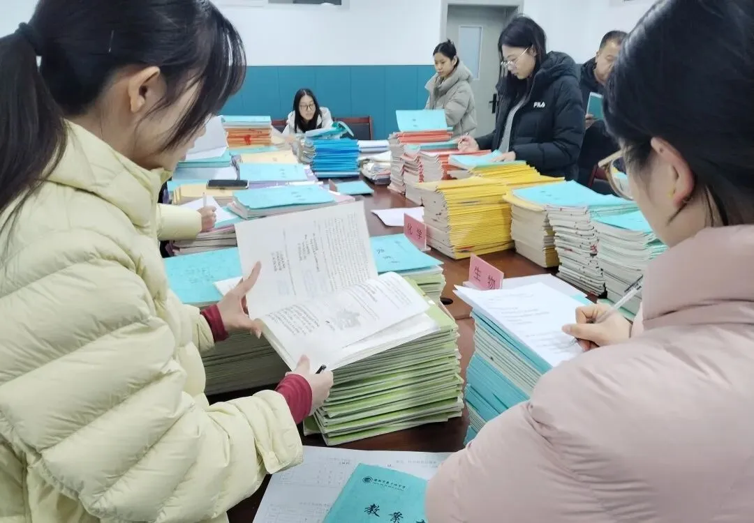检查过程中,校领导、各学科组组长秉持客观、严谨的原则,逐本翻阅、细致点评,重点关注教案的教学设计逻辑性、教学反思详实度、二次备课针对性,以及作业布置的合理性、批改的及时性和反馈的有效性等。