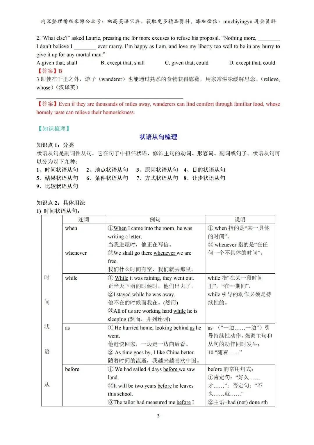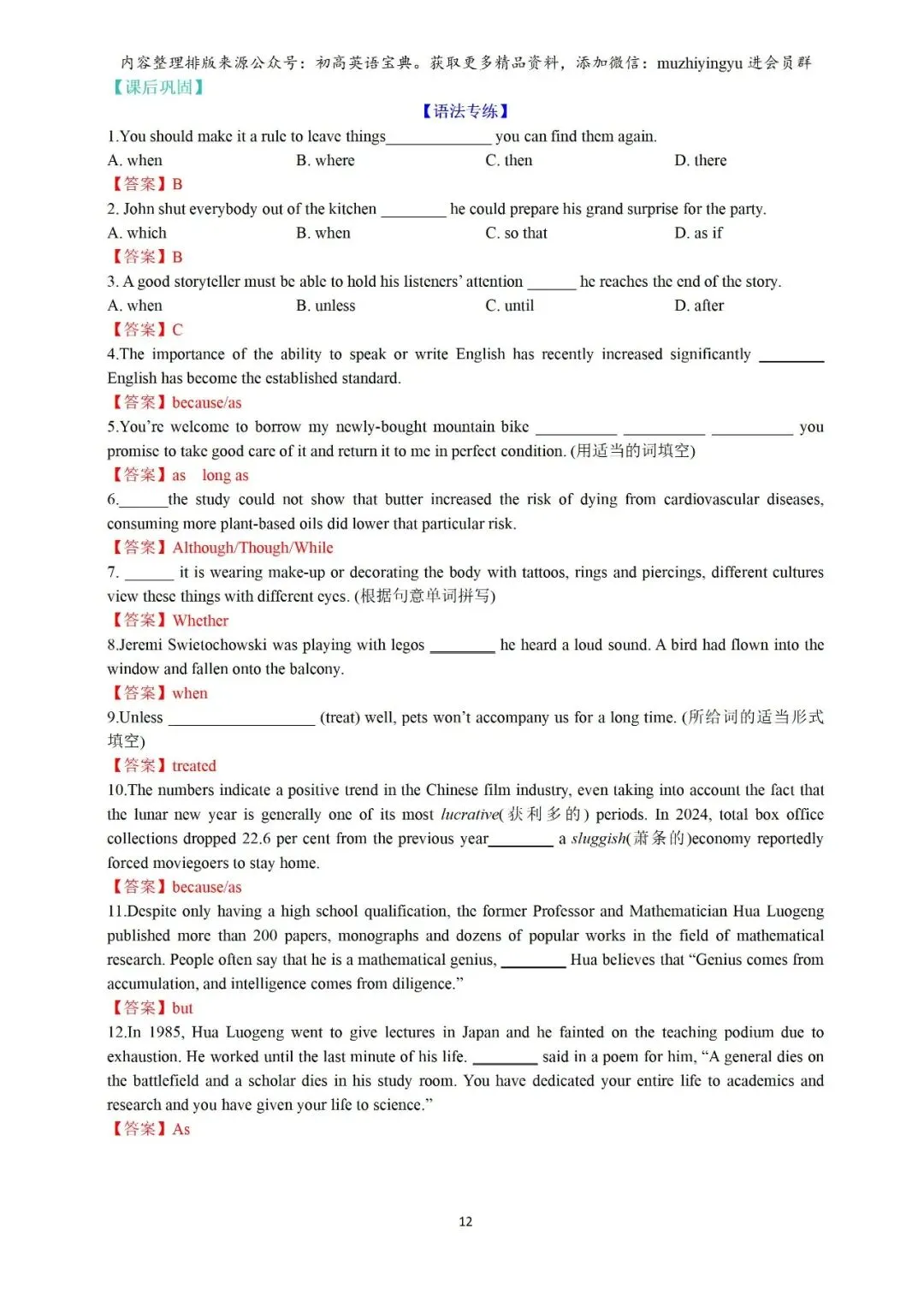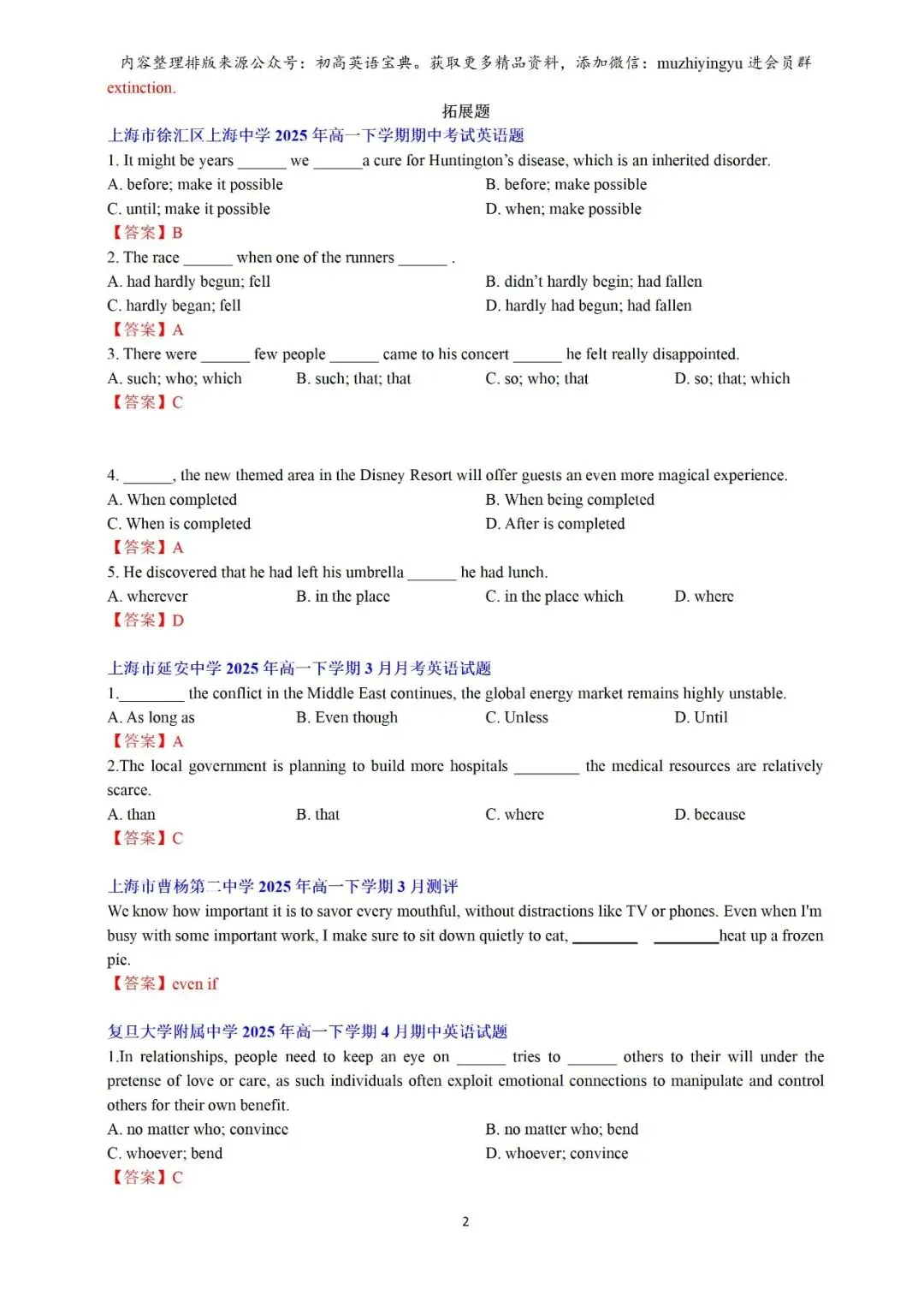 2026年上海高一英语寒假讲义第2讲:状语从句讲解&12月月考卷